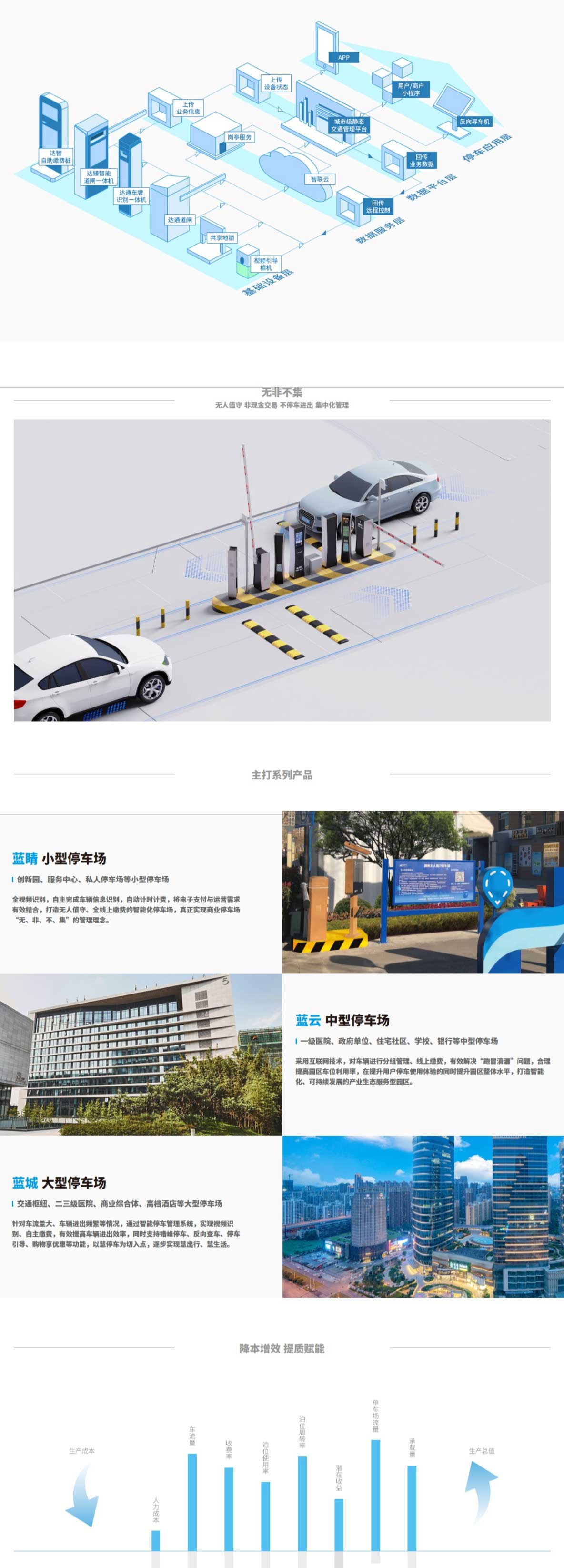 通過(guò)達(dá)臻智能道閘、達(dá)通道閘、達(dá)智自助繳費(fèi)樁、共享地鎖等前端智能設(shè)備與靜態(tài)交通管理平臺(tái)的數(shù)據(jù)交互,打造“無(wú)人值守,無(wú)感支付”的智慧停車管理模式,數(shù)字賦能停車場(chǎng)管理運(yùn)營(yíng),提質(zhì)增效。