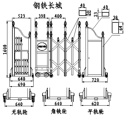 南北德信NB-鋼鐵長城不銹鋼伸縮門門體采用公司自行加工優(yōu)質(zhì)不銹鋼和鋁型材等材料制作,主框架采用立體四維平行原理鉸接,伸縮靈活。伸縮門主要由門體、驅(qū)動器、控制系統(tǒng)構(gòu)成。驅(qū)動器采用特種電機驅(qū)動,蝸輪蝸桿減速,并設(shè)有手動離合器,停電時可手動啟閉,控制系統(tǒng)有臺控及遙控兩種。可配備滾動顯示屏,顯示個性文字內(nèi)容。還可選配備智能紅外線探頭防碰撞裝置,運行時遇人或異物20-30CM可自動返回運行,從而保障車輛及行人的安全。適用于工礦企業(yè)、機關(guān)院校、娛樂場所、賓館飯店等庭院圍墻門。起到美化環(huán)境、改善企業(yè)面貌、提升企業(yè)形象;有助于營造文明社會、文明企業(yè)、文明城市氣氛;