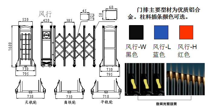 南北德信風(fēng)行-L鋁合金伸縮門門體采用公司自行加工優(yōu)質(zhì)不銹鋼和鋁型材等材料制作,主框架采用立體四維平行原理鉸接,伸縮靈活。伸縮門主要由門體、驅(qū)動(dòng)器、控制系統(tǒng)構(gòu)成。驅(qū)動(dòng)器采用特種電機(jī)驅(qū)動(dòng),蝸輪蝸桿減速,并設(shè)有手動(dòng)離合器,停電時(shí)可手動(dòng)啟閉,控制系統(tǒng)有臺控及遙控兩種??膳鋫錆L動(dòng)顯示屏,顯示個(gè)性文字內(nèi)容。還可選配備智能紅外線探頭防碰撞裝置,運(yùn)行時(shí)遇人或異物20-30CM可自動(dòng)返回運(yùn)行,從而保障車輛及行人的安全。適用于工礦企業(yè)、機(jī)關(guān)院校、娛樂場所、賓館飯店等庭院圍墻門。起到美化環(huán)境、改善企業(yè)面貌、提升企業(yè)形象;有助于營造文明社會(huì)、文明企業(yè)、文明城市氣氛;