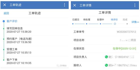 為了提高售后響應速度與服務,車場通過艾科智泊“艾聯(lián)客”公眾號輸入維護工單,維護進度在“艾聯(lián)客”上實時可見,更便于售后服務的追蹤與進度查詢!