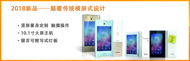 2018,安居寶以定制化的豎屏設(shè)計(jì)突破傳統(tǒng)橫屏設(shè)計(jì),如平板電腦般揮灑時(shí)尚大氣。為強(qiáng)調(diào)產(chǎn)品的多樣化和定制性,巡展中帶來(lái)新款10.1寸豎屏式主機(jī)和7寸豎屏終端,賦予靈動(dòng)的品質(zhì)打造,機(jī)身與面板融為一體,嚴(yán)絲密縫間如一鏡面呈現(xiàn),兼具的白色燈板透光設(shè)計(jì),具備可擦寫式留言及夜光照明功能,實(shí)用與時(shí)尚并舉。