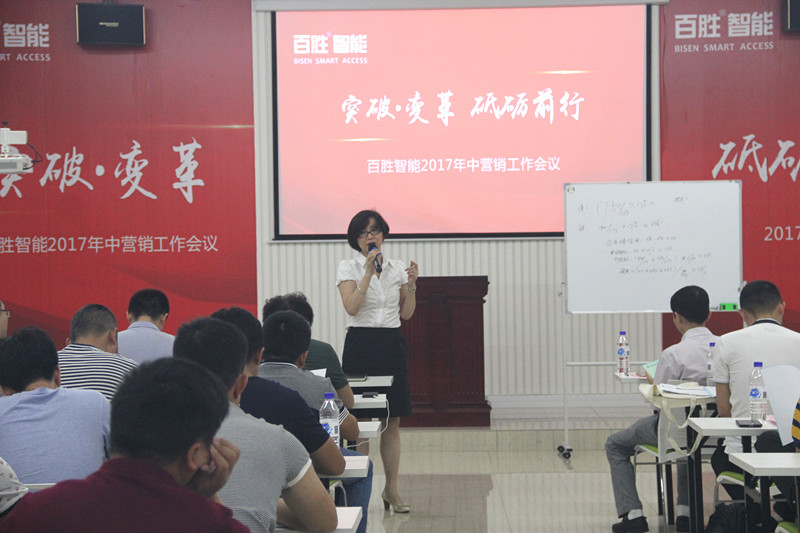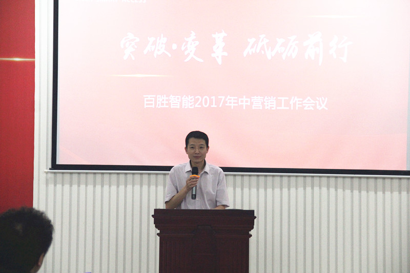 百勝智能營銷副總監(jiān)謝小斌對上半年的營銷工作進(jìn)行了總結(jié)。在市場同質(zhì)化、低價競爭的壓力下,公司上半年銷售業(yè)績同比顯著增長,36V直流無刷開門機(jī)、車牌識別道閘一體機(jī)等新產(chǎn)品表現(xiàn)亮眼;以合肥、太原、武漢為代表的十幾個辦事處,半年度業(yè)績增長突出。