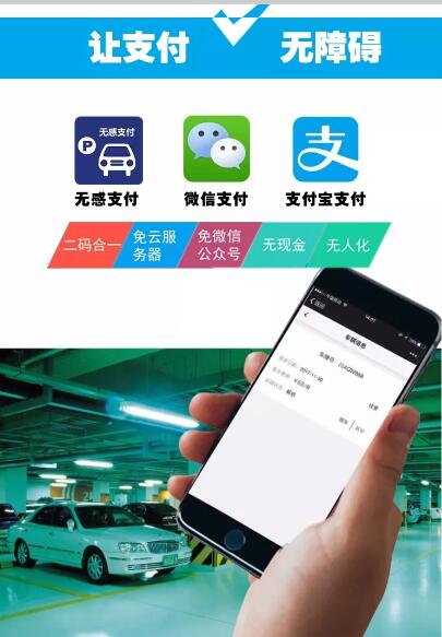 支持無感支付、移動(dòng)支付,微信、支付寶二碼合一、出口掃碼支付、無牌車掃碼進(jìn)出、手機(jī)版商家優(yōu)免、一鍵鎖車。