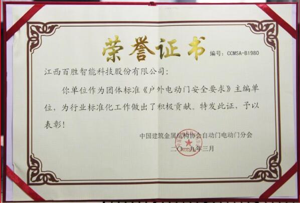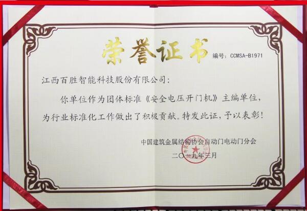 “安全電壓電動(dòng)門(mén)、開(kāi)門(mén)機(jī)雙主編”的殊榮,對(duì)百勝而言,是榮譽(yù),更是責(zé)任!