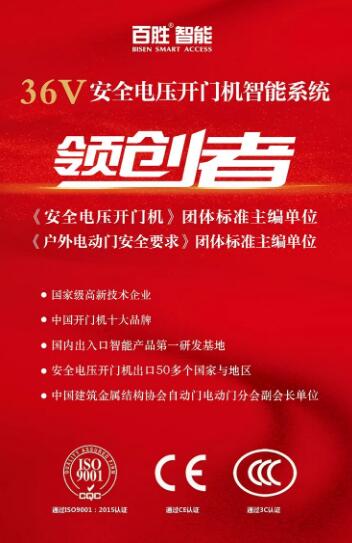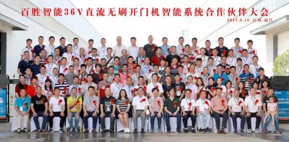 ▲2017年6月份,成功舉辦“36V直流無(wú)刷開(kāi)門(mén)機(jī)智能系統(tǒng)合作伙伴發(fā)展大會(huì)”。百勝在會(huì)議上呼吁:上下游企業(yè)攜手同心、共同努力,推動(dòng)安全電壓開(kāi)門(mén)機(jī)系統(tǒng)的市場(chǎng)普及。