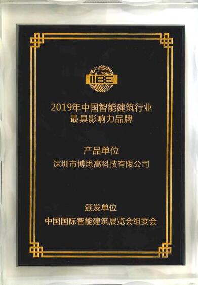 博思高榮獲“2019年中國智能建筑行業(yè)最具影響力品牌”獎(jiǎng)牌