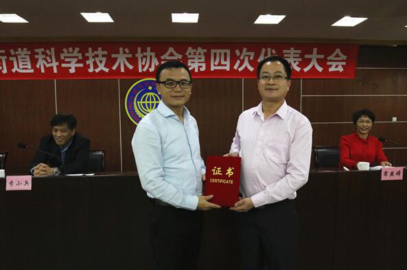 李小兵副主席為新當(dāng)選的科協(xié)副主席頒發(fā)證書(shū)(右二)