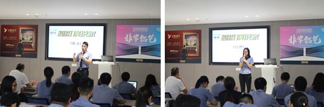 參賽選手來(lái)自營(yíng)銷部的大區(qū)經(jīng)理、招商經(jīng)理和其他部門部分骨干,每個(gè)月的大賽都相當(dāng)精彩,懷著爭(zhēng)當(dāng)演講家的理想,大家你追我趕,誓奪冠軍。