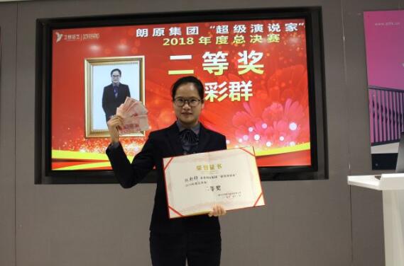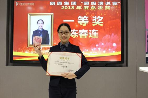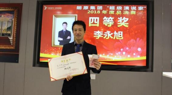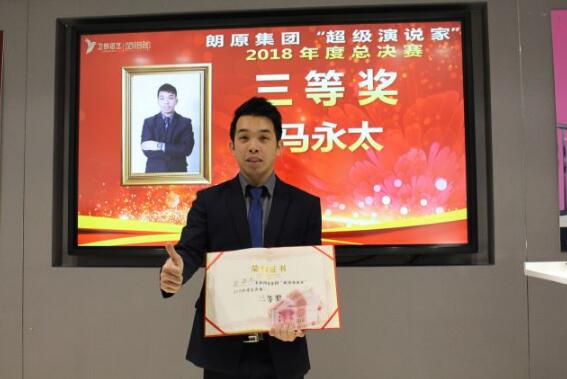 吳為杰副總和許成業(yè)老師為陳春連頒發(fā)2018年度“超級演說家”總決賽一等獎(jiǎng)證書和獎(jiǎng)金