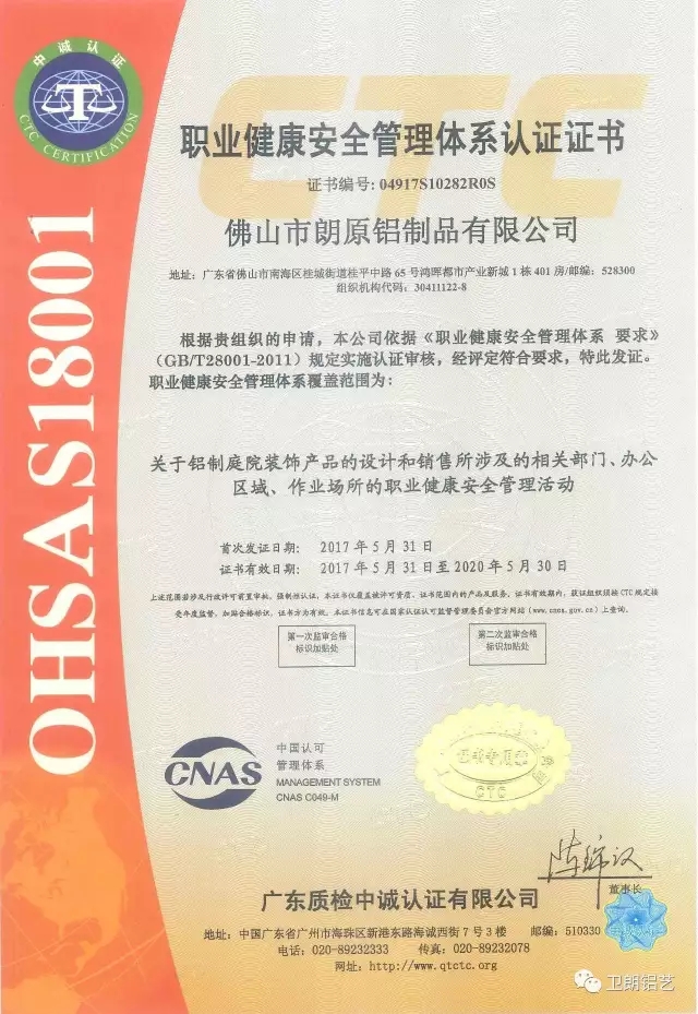 目前,我公司擁有ISO9001質量管理體系、OHSAS18001職業(yè)健康安全管理體系、ISO14001環(huán)境管理體系三大管理體系的認證證書,完成了三證合一的體系認證。