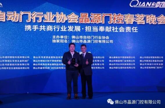 本次行業(yè)年會活動冠名贊助是佛山市晶源門控有限公司與協(xié)會合作的第一個項(xiàng)目,公司希望以身作則,與行業(yè)協(xié)會長期合作,不斷加強(qiáng)聯(lián)系,深入溝通,一起攜手,取得更大的成就!