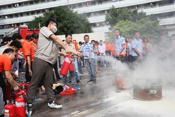 現(xiàn)場(chǎng)清理完畢后,指揮員對(duì)大家進(jìn)行消防安全培訓(xùn)及滅火器使用示范,公司義務(wù)消防員及各部門(mén)消防演練積極份子參與了示范。