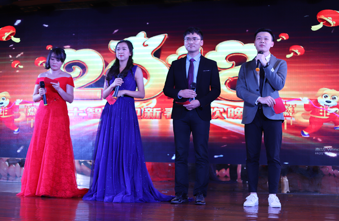 伴隨著歡快的樂曲,明亮的舞臺屏幕上播放著暖心的員工祝福視頻,大家談笑風(fēng)生,滿懷期待晚會的開始。隨著《恭喜發(fā)財》熱情洋溢的開場舞結(jié)束,四位靚麗的主持人齊齊亮相,為富士智能全體同仁獻上溫暖響亮的聲聲祝福,并宣告晚會正式開始。