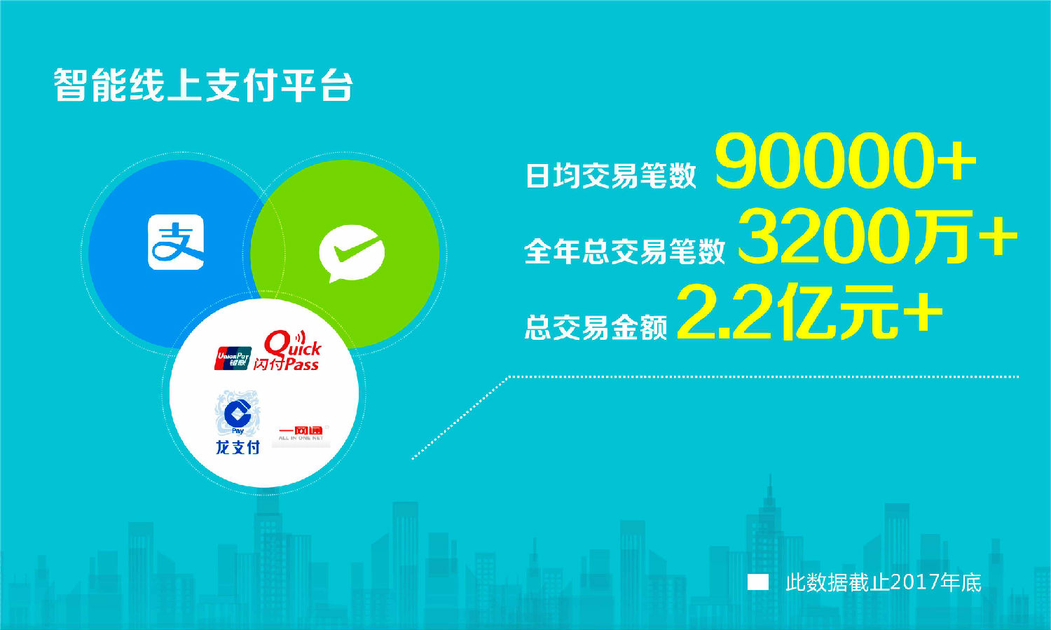 截至2017年底,兩大云平臺已覆蓋實名用戶50萬+,其中“E7+云平臺”已累計覆蓋全國25個省份及直轄市的500多個停車項目,車道數(shù)突破2500+;“線上支付云平臺”日均交易量達(dá)9萬余筆,全年總交易量超過3200萬筆,總交易金額突破2.2億元。兩大云平臺已成為富士智能的核心競爭優(yōu)勢,有力提升了富士智能的市場競爭力。