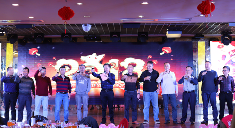 在精彩的致辭后,各高層領(lǐng)導(dǎo)上臺,與徐董一起向在場的全體富士智能同仁祝酒。大家共同舉起了手中的酒杯,敬心中的安防夢想,敬矢志卓越的富士智能,敬與眾不同的我們自己,敬更加輝煌燦爛的明天,豪情萬丈,一飲而盡!