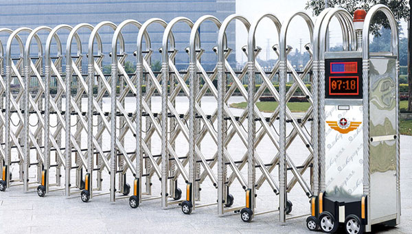 鶴壁伸縮門就是門體可以伸縮自由移動,來控制門洞大小、來控制行人或車輛的攔截和放行的一種門。伸縮門主要由門體、驅(qū)動電機,滑道、控制系統(tǒng)構(gòu)成。門體采用優(yōu)質(zhì)不銹鋼及鋁合金專用型材制作,采用平行四邊形原理鉸接,伸縮靈活行程大。驅(qū)動器采用特種電機驅(qū)動,蝸桿蝸輪減速,并設有自動離合或手動離合器,自動離合停電時可自動啟閉,手動離合停電時可手動啟閉,控制系統(tǒng)有控制板,按鈕開關(guān),另可根據(jù)需求配備無線遙控裝置。