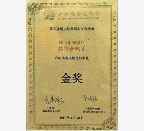 建星人,建星夢,攜手唱響佛山好聲音!8月20日,2017年新加坡第六屆國際華文合唱節(jié)落幕,建星合唱團(tuán)榮獲金獎。
