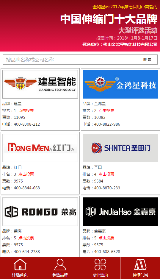 2018年新年伊始,在由中國伸縮門網(wǎng)舉辦的2017年“中國伸縮門十大品牌”評選活動中,建星智能再次榮膺用戶喜愛的伸縮門品牌第一名。本次評比,行業(yè)內(nèi)知名企業(yè)云集,建星智能獲得本次評比冠軍體現(xiàn)了廣大用戶對建星品牌的高度認可。20多年以來,建星人一直秉承“傾注精心,鑄就專業(yè)”的工匠精神,專注于伸縮門的研發(fā)制造,一直屹立于伸縮門行業(yè)的發(fā)展的前列。建星人信奉“以人為本,服務(wù)客戶”的理念,著力打造“天下建星是一家,相親相愛建星人”的品牌文化。 新的一年,公司將持續(xù)提高服務(wù)水平,更加重視產(chǎn)品質(zhì)量,持續(xù)完善教育和培訓(xùn)系統(tǒng),全面提升企業(yè)形象!