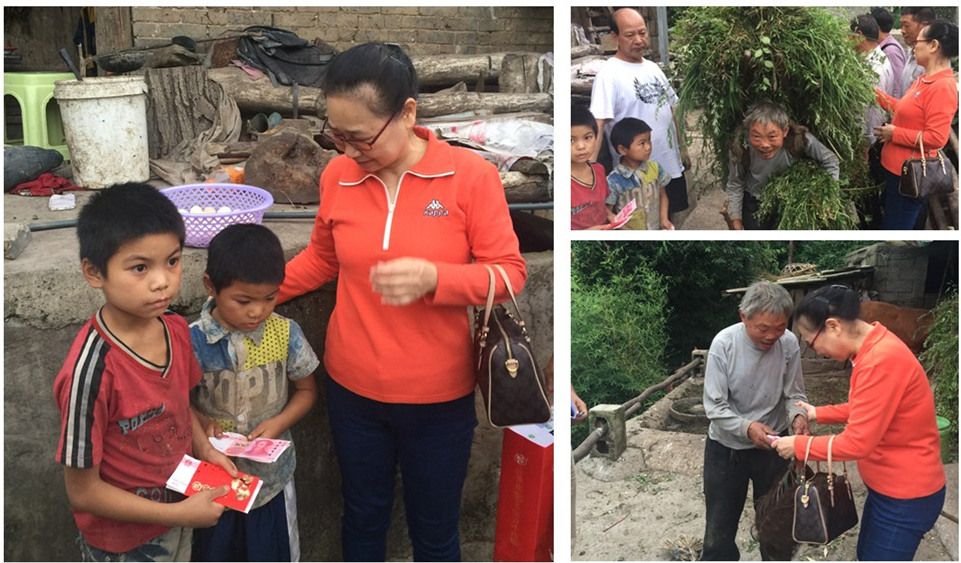 在捐助學(xué)校學(xué)生物資后,基金會(huì)一行七人驅(qū)車趕往400多公里外貴州西北的大方縣,走訪基金會(huì)連續(xù)五年資助的100多名貧困大學(xué)生的家庭。去往貧困大學(xué)生家庭的路上,山路盤旋,路途遙遠(yuǎn)。其中居住在小屯鄉(xiāng)半山腰的黃敏同學(xué)家中,今年9月剛考上遵義醫(yī)學(xué)與科技學(xué)院臨床專業(yè)。屋內(nèi)四壁殘破、滿目瘡痍,家里沒兩件像樣的家具,雨天漏水,夜晚甚難入睡。由于田少無固定收入,父親靠打散工掙錢。其叔叔一家更是凄慘,叔叔車禍去世,嬸嬸遠(yuǎn)走改嫁,留下一對(duì)孩子,大的10歲,小的7歲,僅靠年邁的爺爺奶奶養(yǎng)護(hù)。家中最新的家具竟是基金會(huì)2013年捐助的愛心小書桌,看到小書桌有種相逢不如偶遇的親切??粗⒆拥痛怪劬?,兩手不自覺的卷著衣角,怯怯的站在角落,碰巧爺爺駝著背割草回家那情形,理事一行忍不住留下熱淚,除了給他們送了米、油、牛奶以表心意,不禁紛紛慷慨解囊捐資。 理事長(zhǎng)劉翠英、理事洪禮曉返回酒店后為他們擔(dān)心徹夜難眠,思索著如何更好的幫助他們。