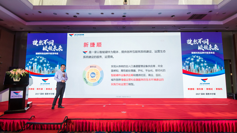 物博會期間捷順科技發(fā)布了新品牌形象,捷順新logo首次在本次物博會亮相。新的logo深藍(lán)色代表自主研發(fā)、生產(chǎn)智能設(shè)備的主業(yè),橙色代表互聯(lián)網(wǎng)場景金融業(yè)務(wù),淺藍(lán)色代表智慧停車運(yùn)營業(yè)務(wù)。三種顏色的結(jié)合,寓意著捷順扎根傳統(tǒng)主業(yè),以場景金融和停車運(yùn)營為翅膀,帶動企業(yè)騰飛。