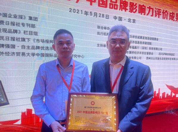 廈門(mén)杰田科技有限公司榮膺“2021中國(guó)品牌影響力100強(qiáng)”大獎(jiǎng)