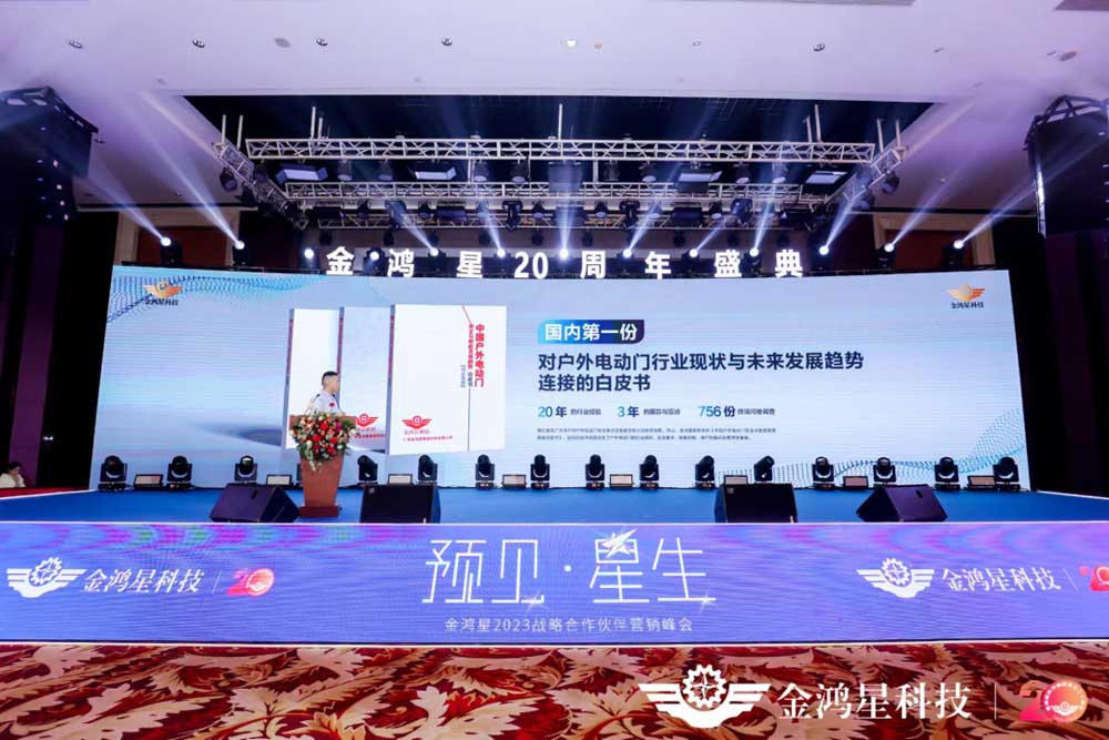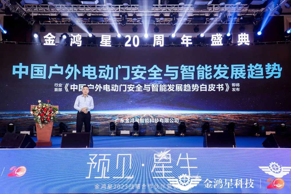 金鴻星董事長(zhǎng)金國(guó)建先生為我們發(fā)表《中國(guó)戶外電動(dòng)門安全與智能發(fā)展趨勢(shì)》的主題分享,并于率先在行業(yè)關(guān)于24V安全電壓驅(qū)動(dòng)以及智能控制系統(tǒng)的全系列標(biāo)配啟動(dòng)儀式,同時(shí)邀約中國(guó)建筑金屬結(jié)構(gòu)協(xié)會(huì)潘冠軍副秘書長(zhǎng)、中國(guó)建筑金屬結(jié)構(gòu)協(xié)會(huì)自動(dòng)門電動(dòng)門分會(huì)戴建國(guó)副會(huì)長(zhǎng)、中出網(wǎng)CEO李明發(fā)先生以及客戶代表出席啟動(dòng)儀式。
