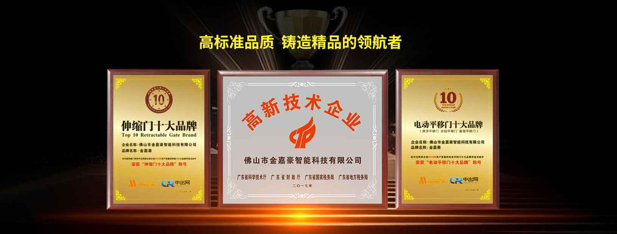 祝賀廣東金嘉豪智能科技有限公司再次斬獲2024年度伸縮門及電動平移門“十大品牌”稱號!2025年3月14日,廣東金嘉豪智能科技有限公司再次迎……