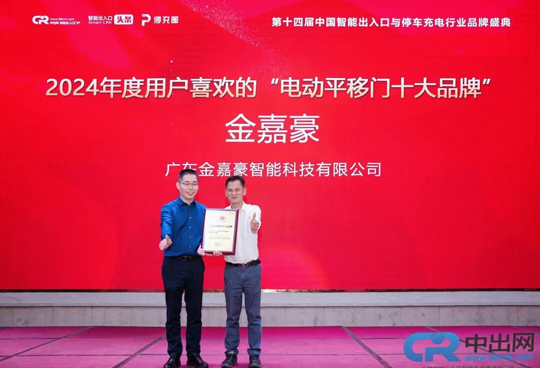 祝賀廣東金嘉豪智能科技有限公司再次斬獲2024年度伸縮門及電動(dòng)平移門“十大品牌”稱號(hào)!