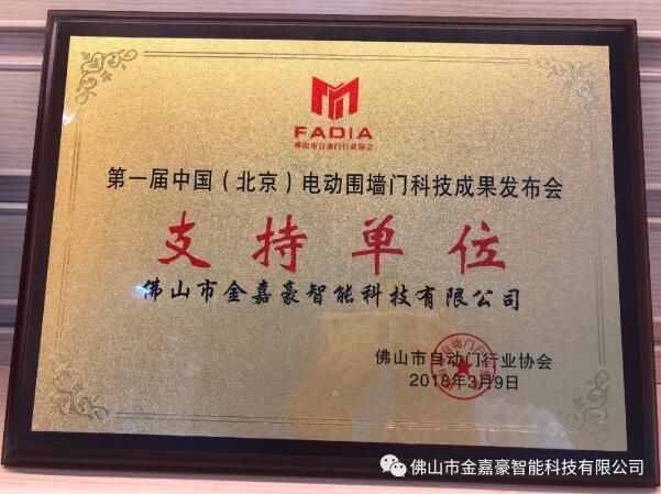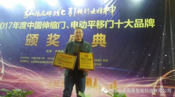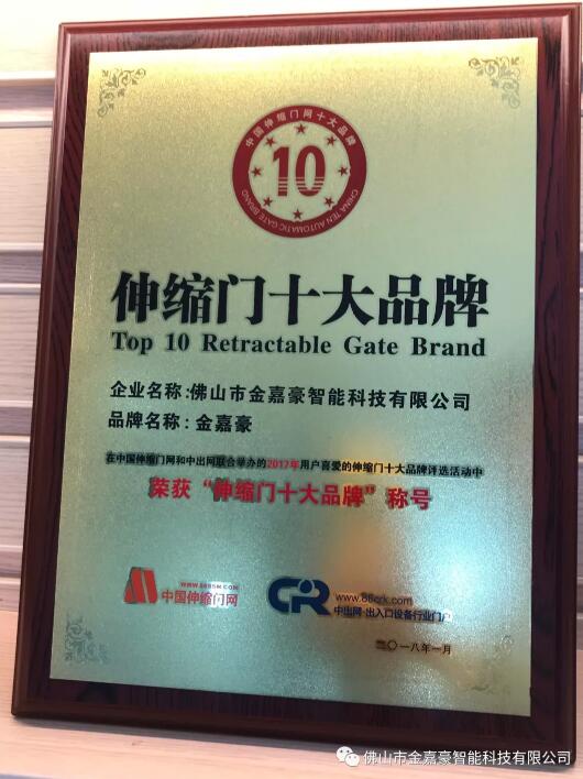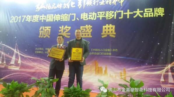金嘉豪連續(xù)6年獲得中國(guó)伸縮門十大品牌
