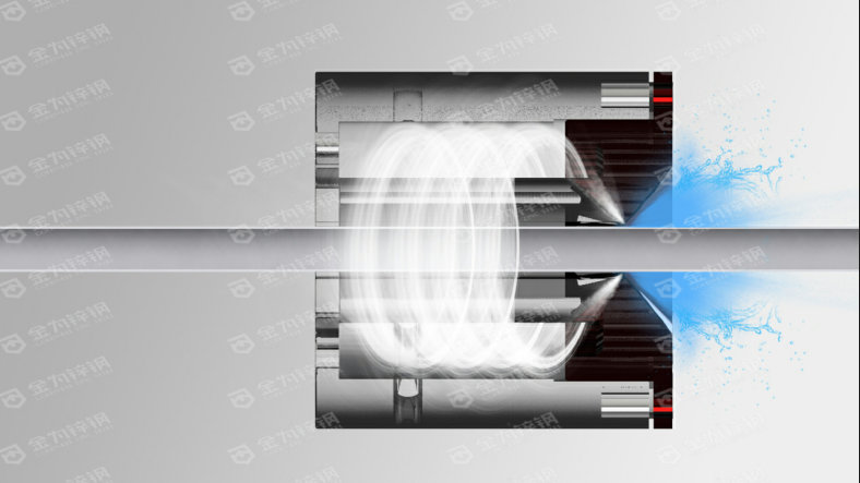 本次入選項(xiàng)目“防銹緊固型鋅鋼防護(hù)產(chǎn)品的開發(fā)與產(chǎn)業(yè)化”的專利技術(shù) “一種干管器(專利號(hào): ZL201310212378.3)”,由金為公司自主研發(fā)及轉(zhuǎn)化實(shí)施,采用高壓氣刀技術(shù),通過(guò)在氣腔里面形成環(huán)狀高壓氣流來(lái)清除防銹緊固型鋅鋼防護(hù)產(chǎn)品表面微小水分,避免管材表面形成結(jié)晶狀氧化鋅,確保噴涂后的涂層附著力,提高了防銹緊固型鋅鋼防護(hù)產(chǎn)品整體防銹防水性能,提高了防護(hù)產(chǎn)品質(zhì)量,能降低人工擦拭的勞動(dòng)強(qiáng)度,降低生產(chǎn)、銷售成本。其技術(shù)水平達(dá)到經(jīng)權(quán)威機(jī)構(gòu)評(píng)估,達(dá)到國(guó)際先進(jìn)水平。