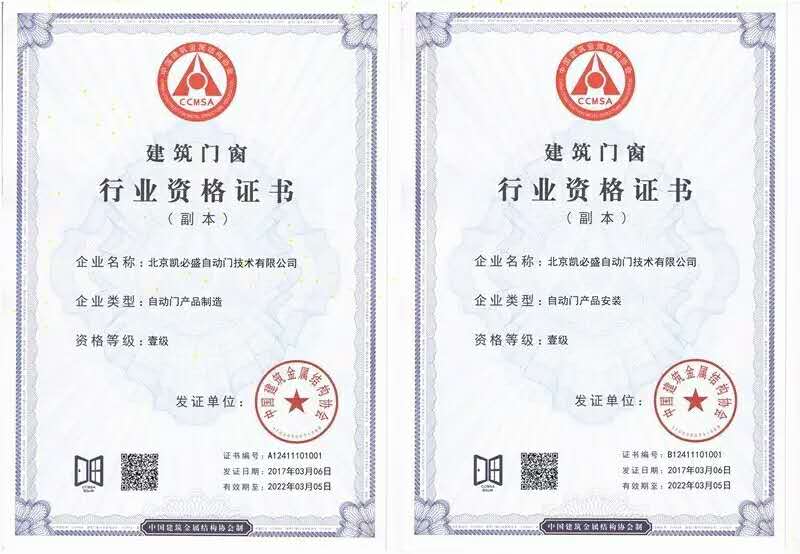 雙一級資質是自動門電動門行業(yè)資質標準的最高級別,是衡量企業(yè)整體實力的重要指標,對參評企業(yè)的人員素質、制造能力、管理質量、工程業(yè)績要求都極為嚴苛。但正是這舉步維艱的審核之路,恰恰證明了這一榮譽的彌足珍貴。