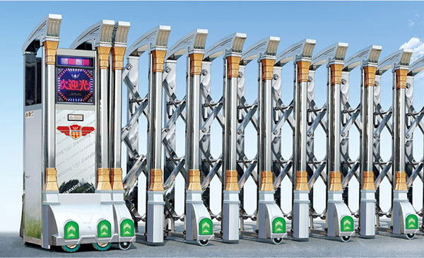 開封伸縮門就是門體可以伸縮自由移動(dòng),來(lái)控制門洞大小、來(lái)控制行人或車輛的攔截和放行的一種門。伸縮門主要由門體、驅(qū)動(dòng)電機(jī),滑道、控制系統(tǒng)構(gòu)成。門體采用優(yōu)質(zhì)不銹鋼及鋁合金專用型材制作,采用平行四邊形原理鉸接,伸縮靈活行程大。驅(qū)動(dòng)器采用特種電機(jī)驅(qū)動(dòng),蝸桿蝸輪減速,并設(shè)有自動(dòng)離合或手動(dòng)離合器,自動(dòng)離合停電時(shí)可自動(dòng)啟閉,手動(dòng)離合停電時(shí)可手動(dòng)啟閉,控制系統(tǒng)有控制板,按鈕開關(guān),另可根據(jù)需求配備無(wú)線遙控裝置。