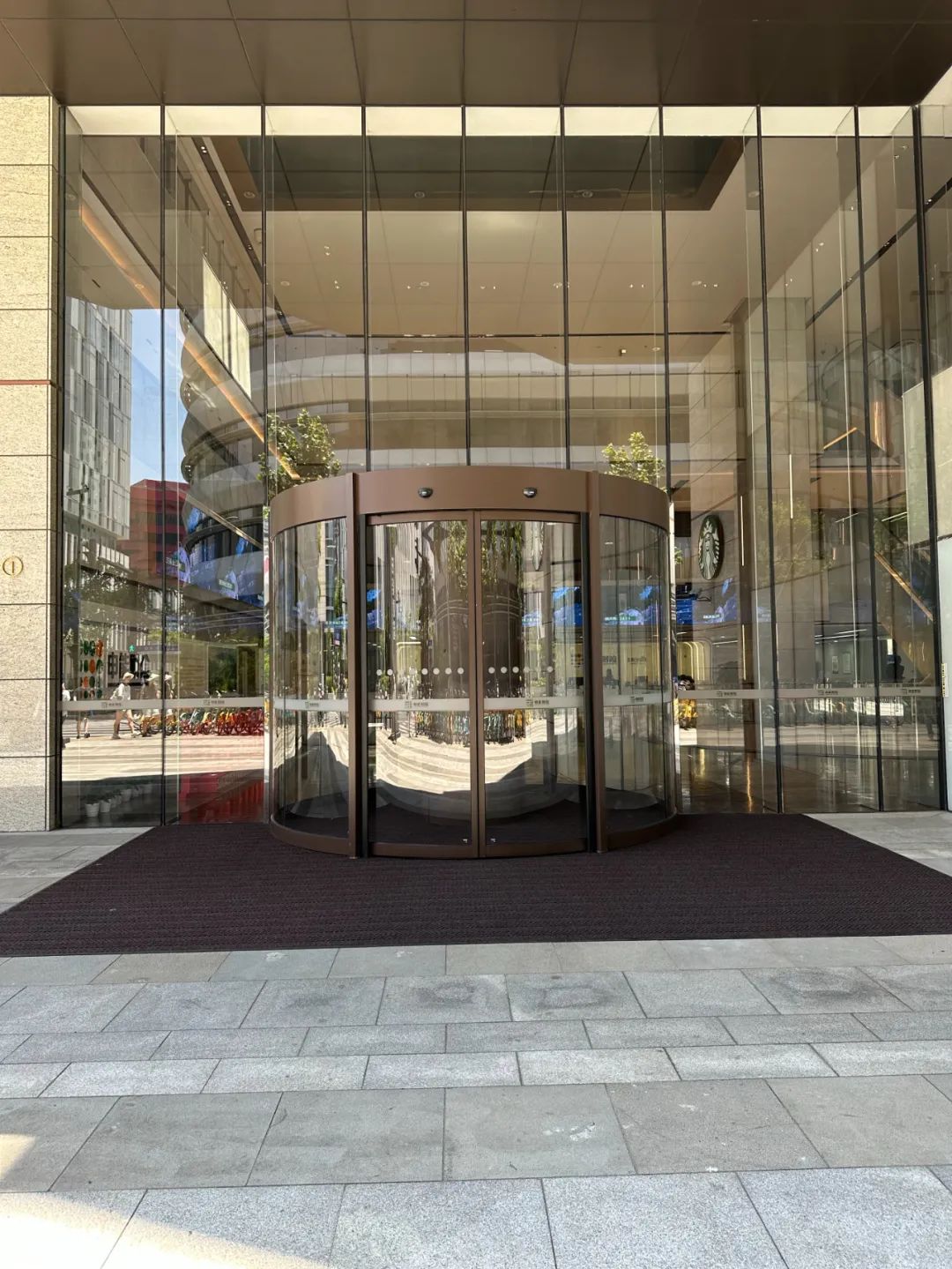 PAD®為申能財險設計的圍柱式弧形自動門,整體門高2835mm,通行內徑4000mm,采用了玫瑰金的配色,大面積的弧形玻璃,與原建筑的通體玻璃幕墻相輔相成,是的整體建筑更加透明,明亮,設計感和高級感得到了很大的提升。無論從各個角度來看,都能給我們帶了一個非常好的視覺體驗,這不僅僅是一個簡單的門區(qū)通道的產(chǎn)品,更能給人視覺上的沖擊和享受。