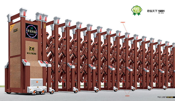 普洱伸縮門就是門體可以伸縮自由移動,來控制門洞大小、來控制行人或車輛的攔截和放行的一種門。伸縮門主要由門體、驅動電機,滑道、控制系統(tǒng)構成。門體采用優(yōu)質不銹鋼及鋁合金專用型材制作,采用平行四邊形原理鉸接,伸縮靈活行程大。驅動器采用特種電機驅動,蝸桿蝸輪減速,并設有自動離合或手動離合器,自動離合停電時可自動啟閉,手動離合停電時可手動啟閉,控制系統(tǒng)有控制板,按鈕開關,另可根據(jù)需求配備無線遙控裝置。