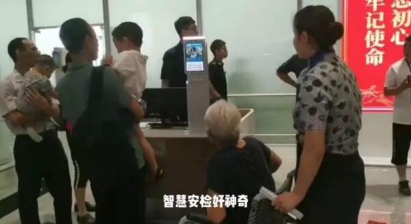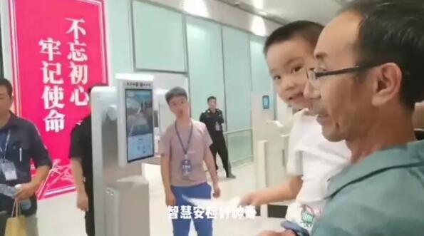 ▲ 演練現(xiàn)場(chǎng),爺孫倆“刷臉”過檢笑開顏