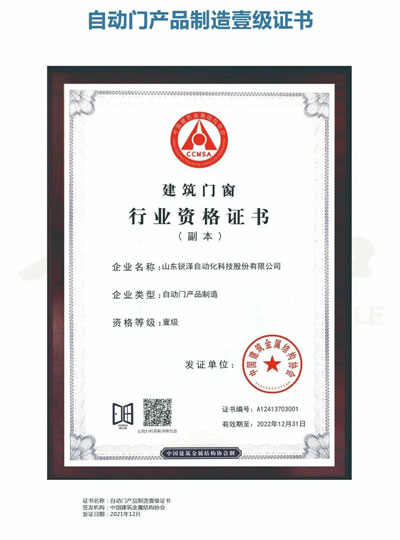 守匠于心,精進(jìn)于行,二十年潛心積淀,銳澤正一步一個腳印發(fā)展壯大。自動門產(chǎn)品制造、安裝雙壹級資質(zhì)的取得,既是肯定和認(rèn)可,同時也是激勵與鞭策。未來,我們將不斷研發(fā)創(chuàng)新,深化服務(wù),延伸品牌影響力,推進(jìn)企業(yè)實現(xiàn)更大的發(fā)展!