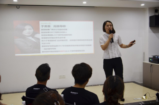 11時(shí),于美香特級導(dǎo)師針對學(xué)員如何配備店面人員、精準(zhǔn)分解店面銷售目標(biāo)的問題進(jìn)行講解剖析,解決如何全員目標(biāo)明確,條理清晰,建立公司化運(yùn)營的標(biāo)準(zhǔn)化終端門店的問題。