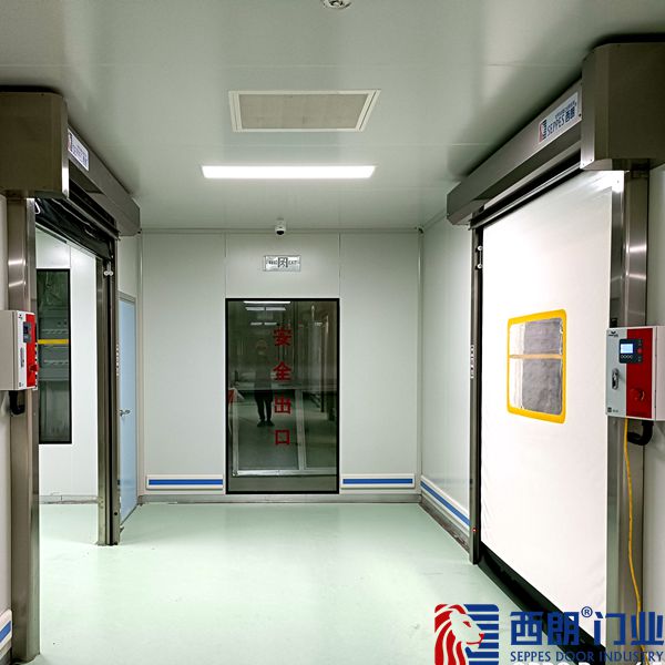 2、潔凈無塵:PVC快速卷簾門的密封性能+不銹鋼的防潮、防水、防腐性能,保證工廠車間的潔凈無塵。
