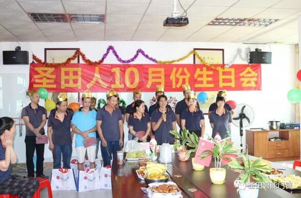 金秋風(fēng)景如畫,十月天高云淡。10月19日,在這個涼爽舒適的秋天,圣田智能科技10月份員工生日會在三樓會議室如期舉行,給我們10月份生日的16位壽星們給予滿滿的祝福。本次生日會由各部門高管帶領(lǐng)全體辦公室及車間部分成員參與。五彩繽紛的會場配上精心準(zhǔn)備的生日蛋糕和禮物,以及讓人垂涎欲滴的時鮮瓜果,都似乎在迎接各位壽星的到來。