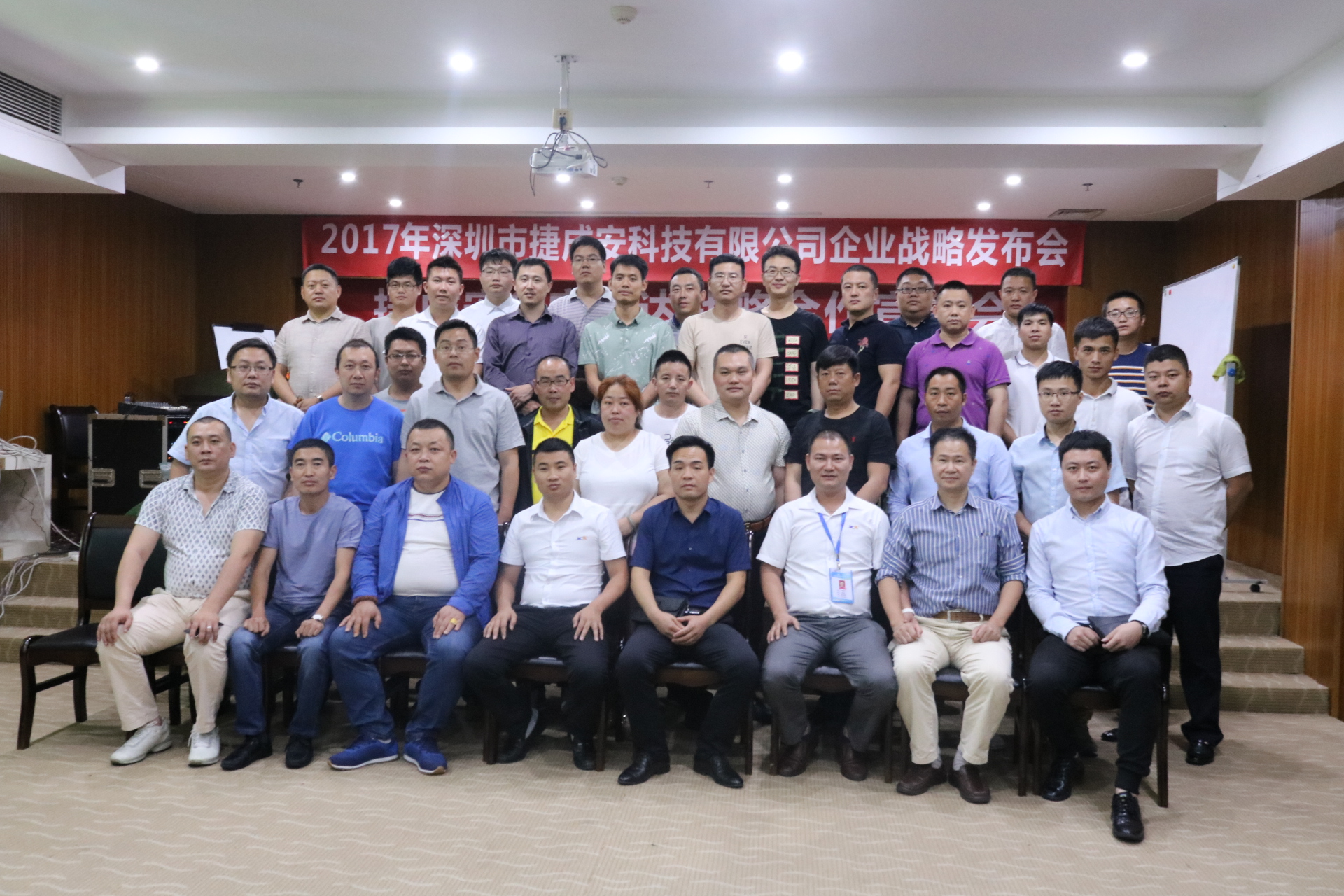 2017年5月22日,以“攜手同行,合作共贏”為主題的2017捷成安品牌戰(zhàn)略發(fā)布會(huì)在觀瀾海林酒店5樓會(huì)議室盛大舉行,來(lái)自全國(guó)各地的部分經(jīng)銷商和公司代表齊聚一堂,共襄盛會(huì)。