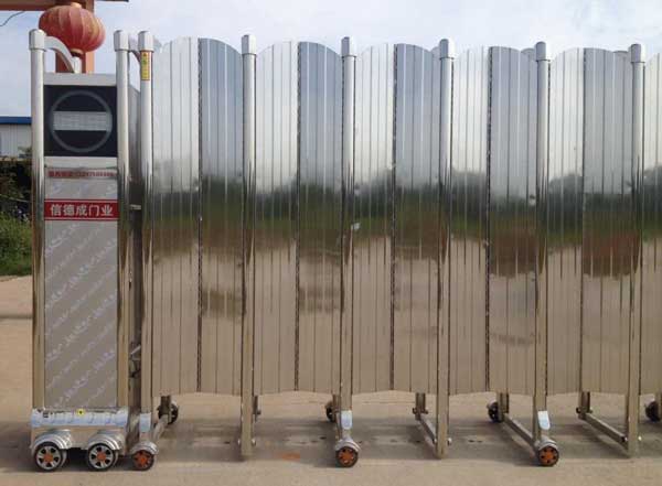 1、伸縮門(mén)體:伸縮門(mén)體是由門(mén)體大框、交叉撐、軸(定軸、滑軸)及門(mén)體輪等主要部件組成。門(mén)體整體為金屬結(jié)構(gòu),按材質(zhì)又分為不銹鋼門(mén)體、鋁合金門(mén)體、壓鑄鋁門(mén)體。