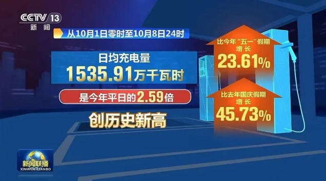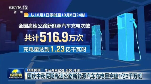 據(jù)10月9日央視《新聞聯(lián)播》報(bào)道,2025年國(guó)慶中秋假期(10月1日零時(shí)至10月8日24時(shí)),全國(guó)高速公路新能源汽車充電迎來(lái)“爆發(fā)式”增長(zhǎng):累計(jì)充電次數(shù)達(dá)516.9萬(wàn)次,充電量突破1.23億千瓦時(shí);日均充電量1535.91萬(wàn)千瓦時(shí),較今年“五一”假期增長(zhǎng)23.61%、較去年國(guó)慶假期增長(zhǎng)45.73%,創(chuàng)下歷史新高。