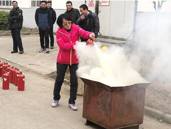 在學(xué)習(xí)了滅火器的操作后,員工參加了滅火器使用的實(shí)戰(zhàn)演練,將鐵桶中熊熊燃燒的大火撲滅。