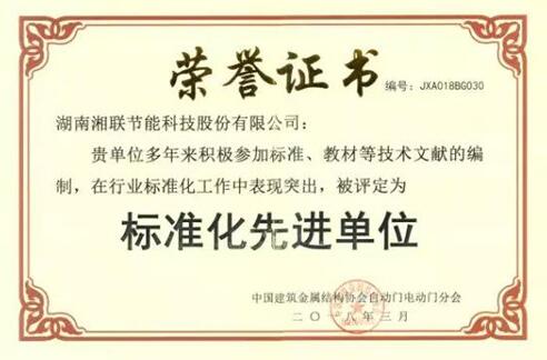 湖南湘聯(lián)節(jié)能科技股份有限公司榮獲【標(biāo)準(zhǔn)化先進單位】獎項
