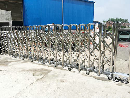 1、伸縮門體:伸縮門體是由門體大框、交叉撐、軸(定軸、滑軸)及門體輪等主要部件組成。門體整體為金屬結(jié)構(gòu),按材質(zhì)又分為不銹鋼門體、鋁合金門體、壓鑄鋁門體。