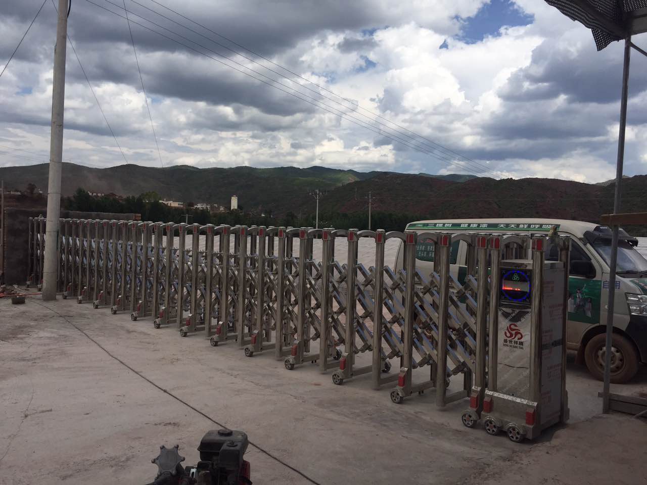 1、伸縮門體:伸縮門體是由門體大框、交叉撐、軸(定軸、滑軸)及門體輪等主要部件組成。門體整體為金屬結(jié)構(gòu),按材質(zhì)又分為不銹鋼門體、鋁合金門體、壓鑄鋁門體。