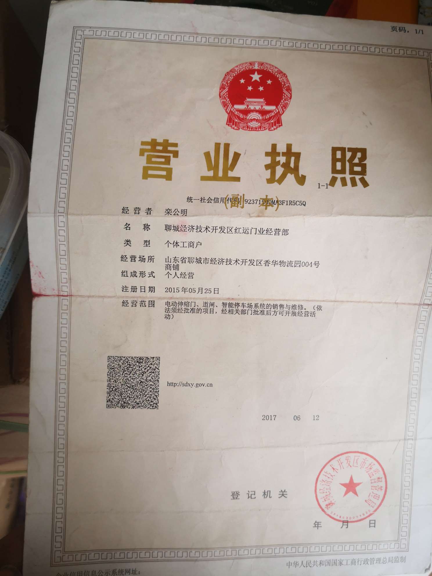 聊城經(jīng)濟(jì)技術(shù)開發(fā)區(qū)紅運(yùn)門業(yè)經(jīng)營(yíng)部成立于2015年05月25日,注冊(cè)地位于山東省聊城市經(jīng)濟(jì)技術(shù)開發(fā)區(qū)香華物流園004號(hào)商鋪,法人代表為欒公明。經(jīng)營(yíng)范圍包括電動(dòng)伸縮門、道閘、智能停車場(chǎng)系統(tǒng)的銷售與維修。