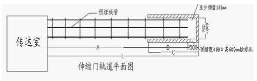 4.門洞末端里側(cè)中上端留寬0.4米,高0.6米檢修孔,有條件的可將門洞總長度再加長0.2-0.3米,這樣可將檢修孔改成一扇小門,方便日后檢修維護伸縮門電氣線路;
